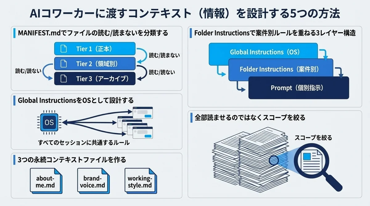 Part 1では、Coworkに渡すコンテキストを設計する5つの方法を紹介します。