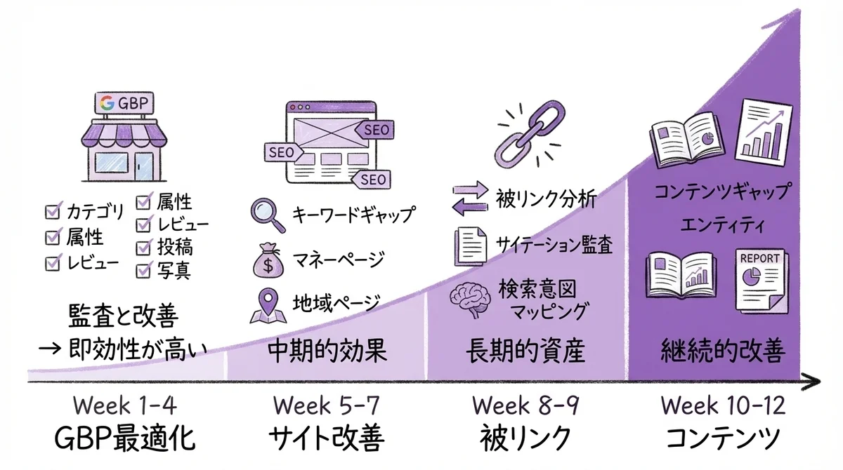 Week 1〜4:GBP最適化(即効性が高いMEO施策から)