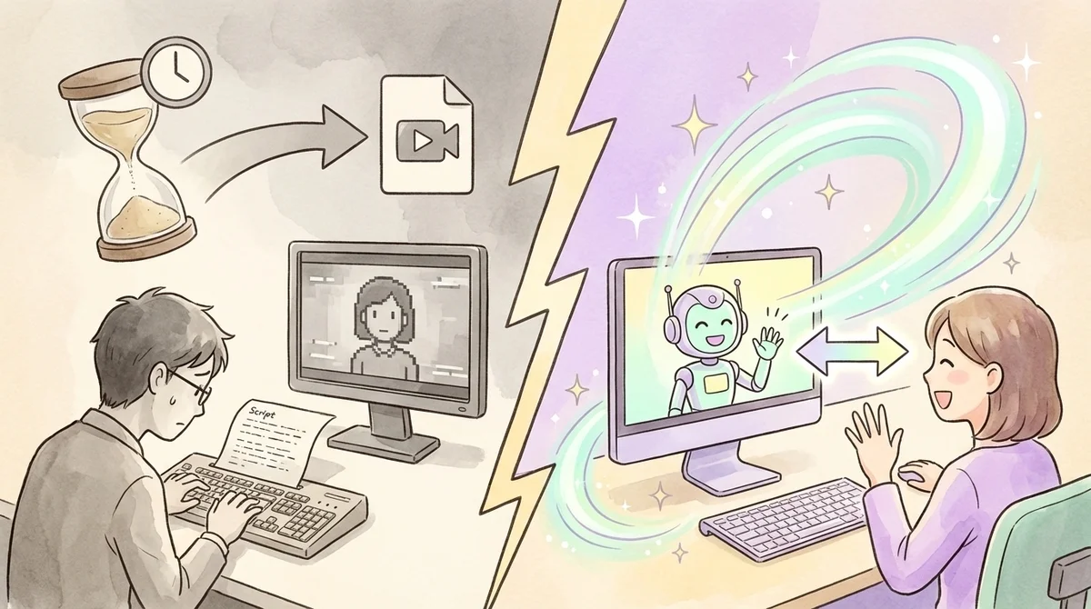 従来のAI動画生成は「完成した動画を出力する」一方通行のツール。