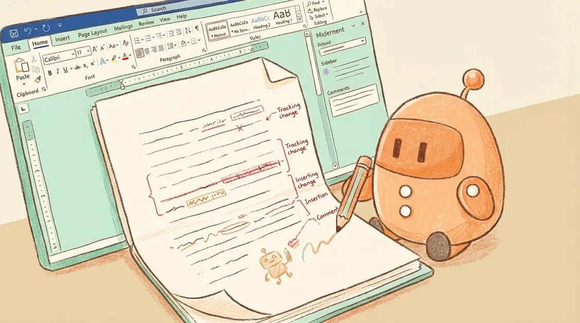 AIが生成した文章やAIによる修正が、Wordの変更履歴(Track Changes)として記録されます。