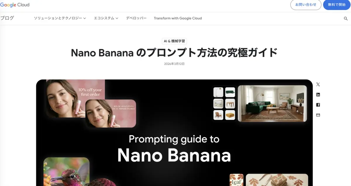 Google Cloud公式ブログで公開されているプロンプトガイドは、Nano BananaのプロンプトをGoogleが自ら解説した一次情報です。