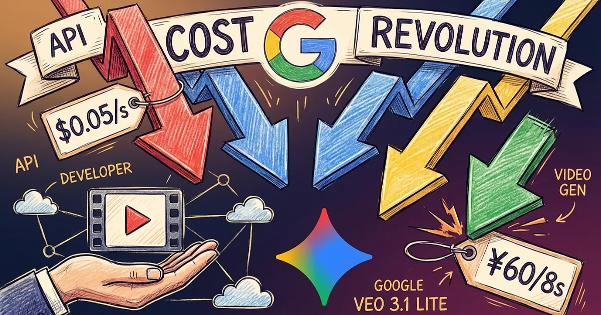 この記事では、Veo 3.1 Liteの価格・スペック・使い方から、Sora 2やVeo 3.1 Fastとの比較、実際のPythonコードまで、開発者が知っておくべき情報をまとめました。