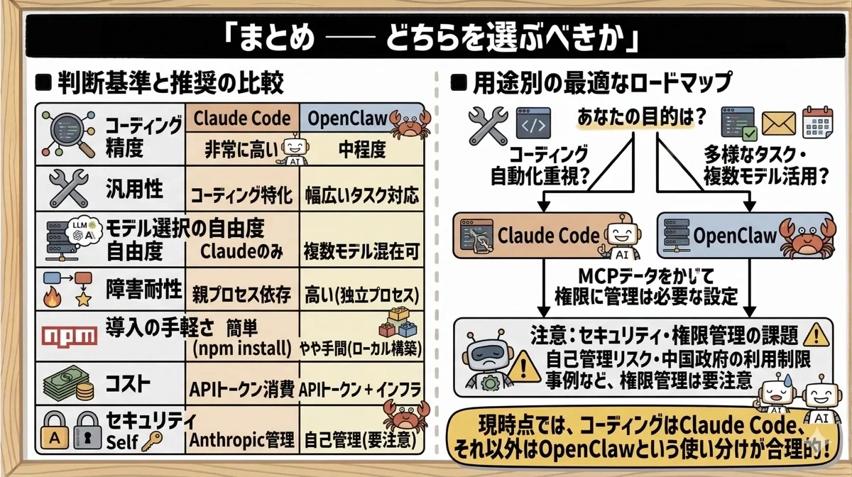 そして、両者は排他的な選択ではありません。コーディングはClaude Code、それ以外のタスク自動化はOpenClawという使い分けが、現時点では最も合理的なアプローチでしょう。