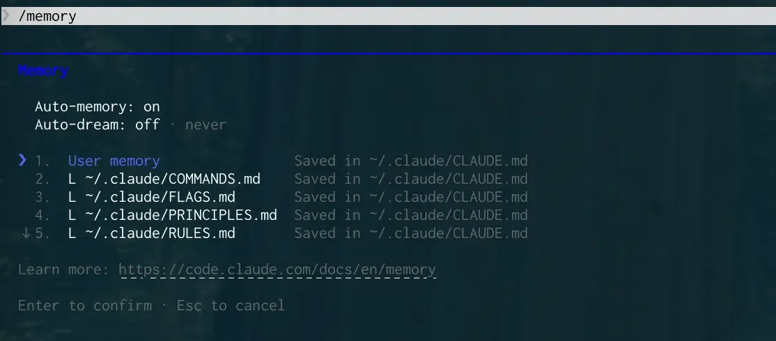 まずは /memory コマンドを実行して、あなたの環境でAuto Dreamが有効になっているか確認してみてください。