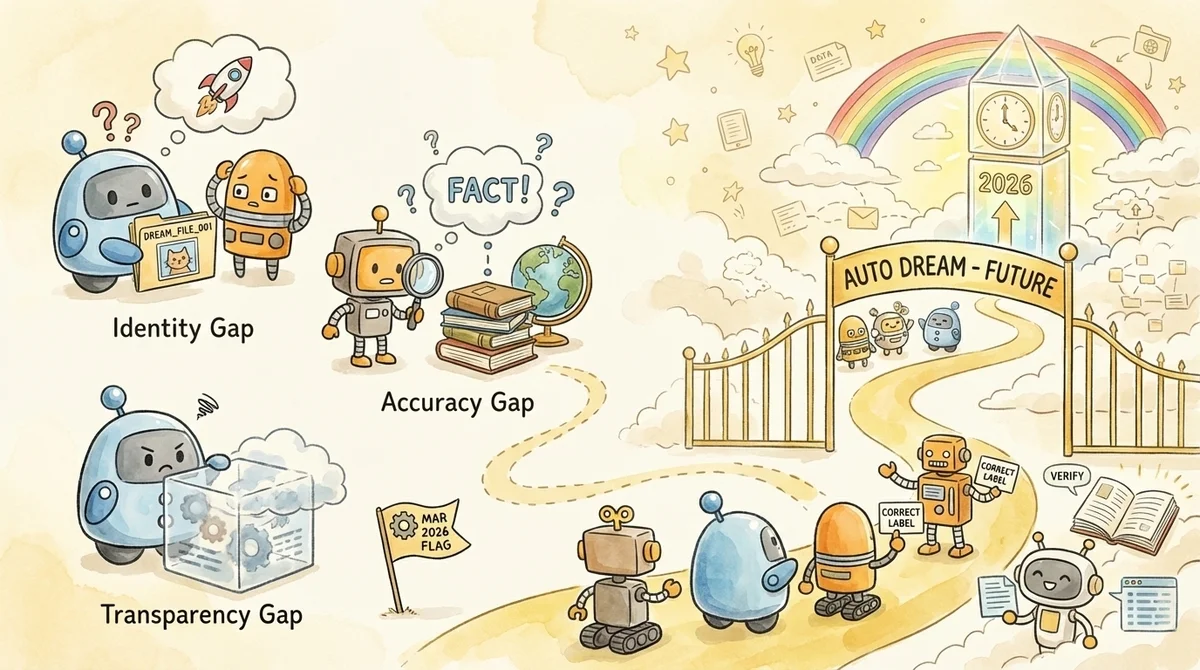 - Accuracy(事実の検証): 事実が検証されないまま記録・統合されるリスクがあります。 Auto Dreamは既存のメモリを整理しますが、その内容が正しいかどうかを外部ソースと照合する仕組みはありません。