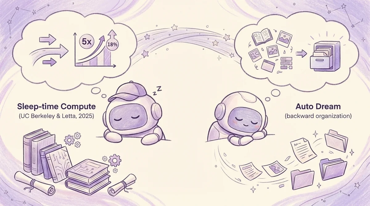 Auto Dreamの設計思想を理解するうえで、一つの論文が参考になります。 UC BerkeleyとLetta(旧MemGPT)チームが2025年4月に発表した「Sleep-time Compute」(arXiv:2504.13171)です。