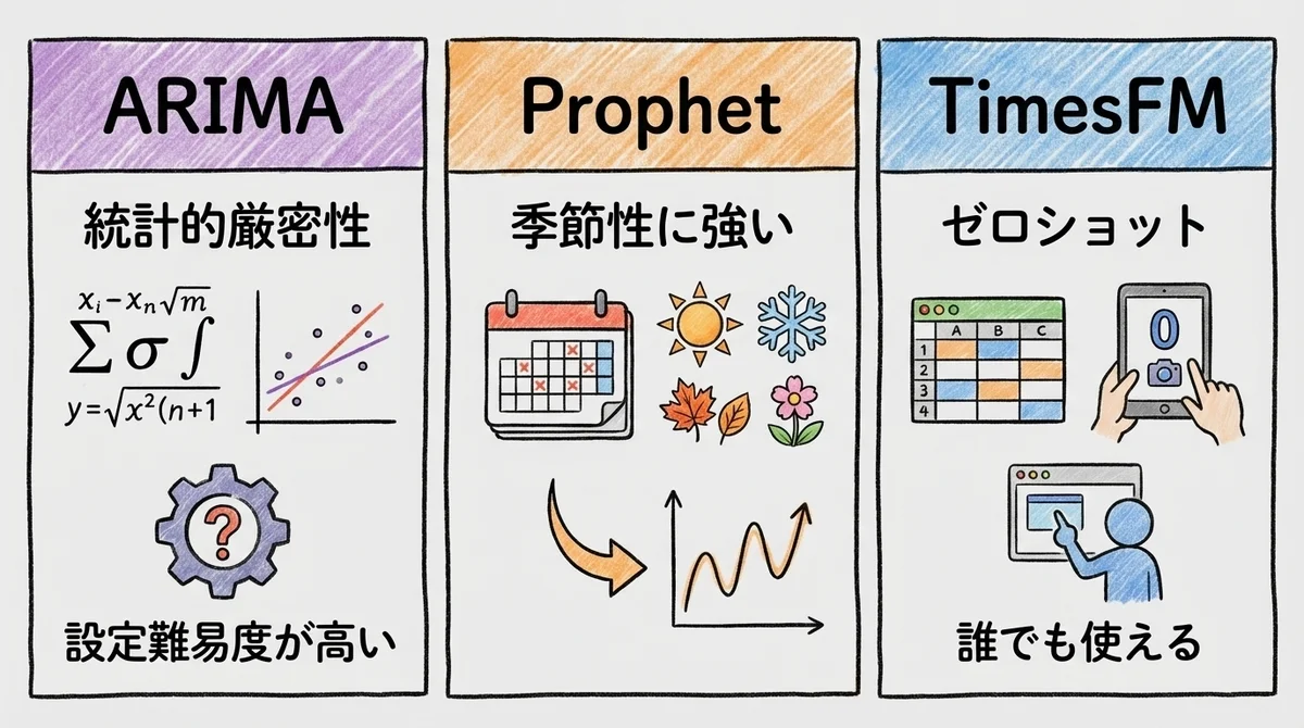 TimesFM vs Prophet vs ARIMA——どれを使うべきか?