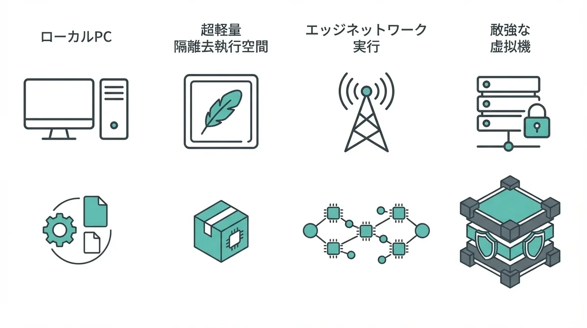 Dockerのような「重い」サンドボックスではなく、ミリ秒単位で起動できるのが特徴です。