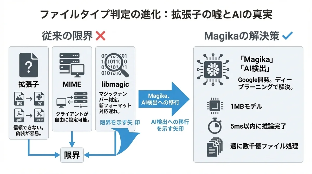 Google Magikaを知っていますか?ファイル偽装を99%の精度で見破る、Google製のAIファイル検出ツールです。