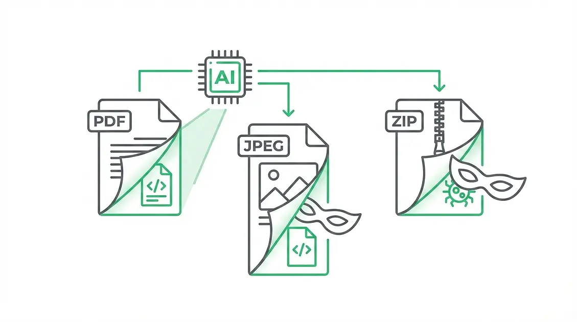 .jpgと名付けられたファイルが実はPythonスクリプトだった、.pdfに見せかけた実行ファイルだった——こういうケースは攻撃者にとって初歩的なテクニックです。