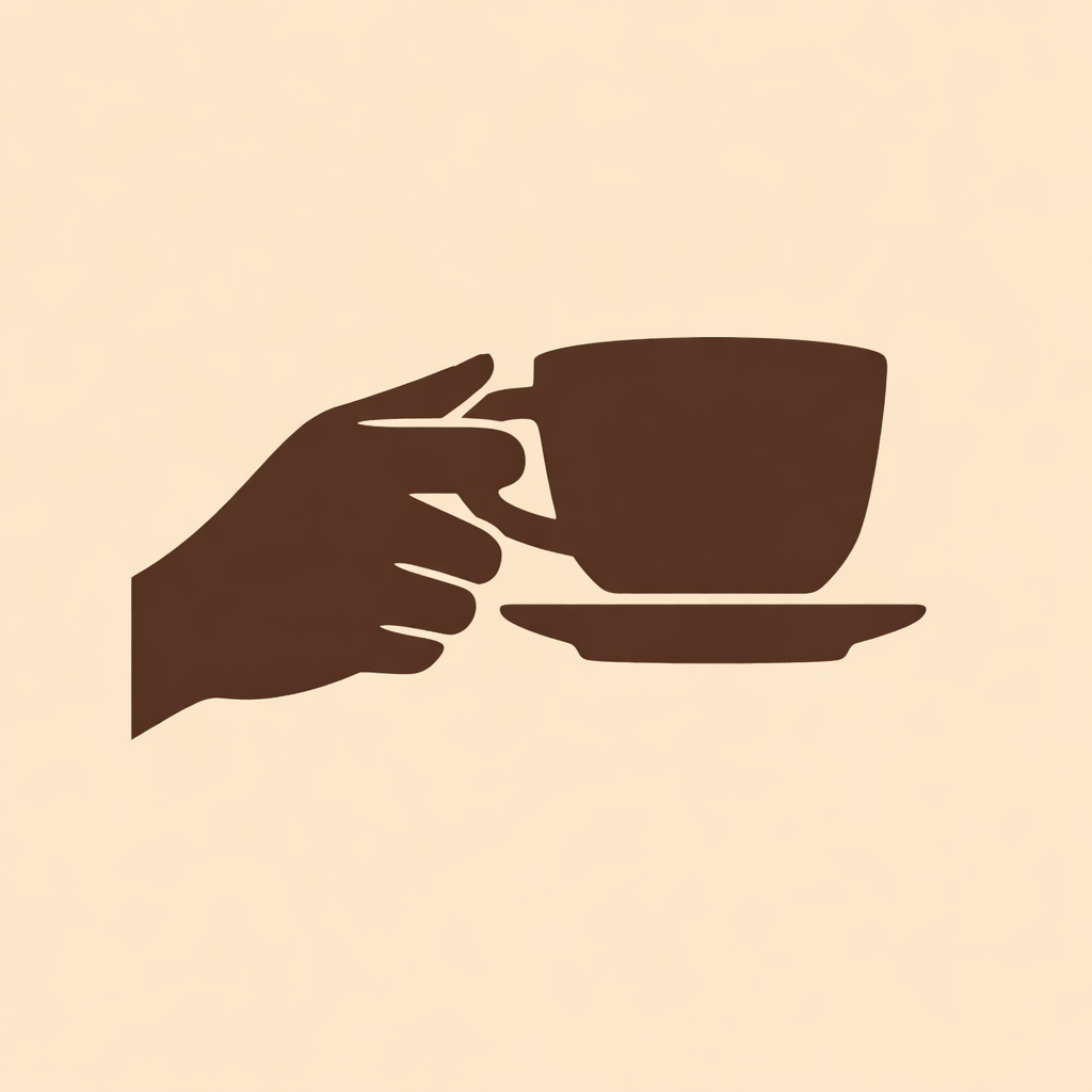 コーヒーカップを持つ手のシルエット。